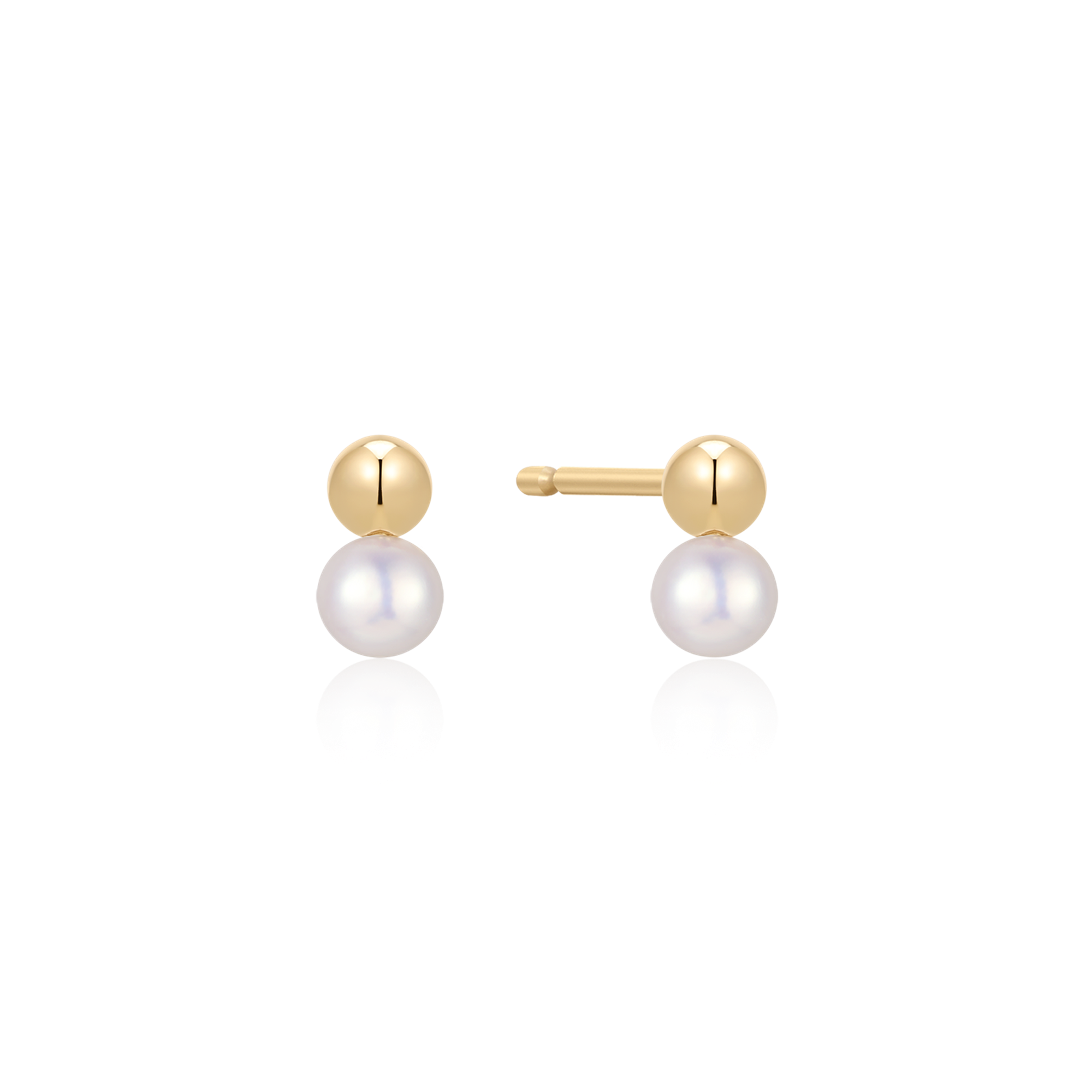 14 kt. guld ørestikker kugle og ferskvandsperle.