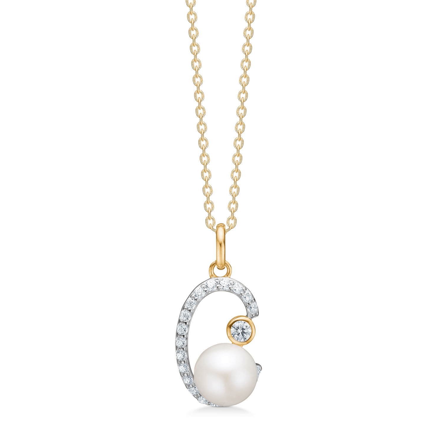 Guldvedhæng - 8kt. med perle, cz og kæde fra Guld & Sølv Design