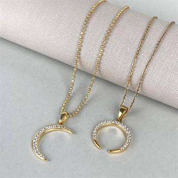 Halskæde, cz horn, 21 cz, forg sølv, fra aagaard