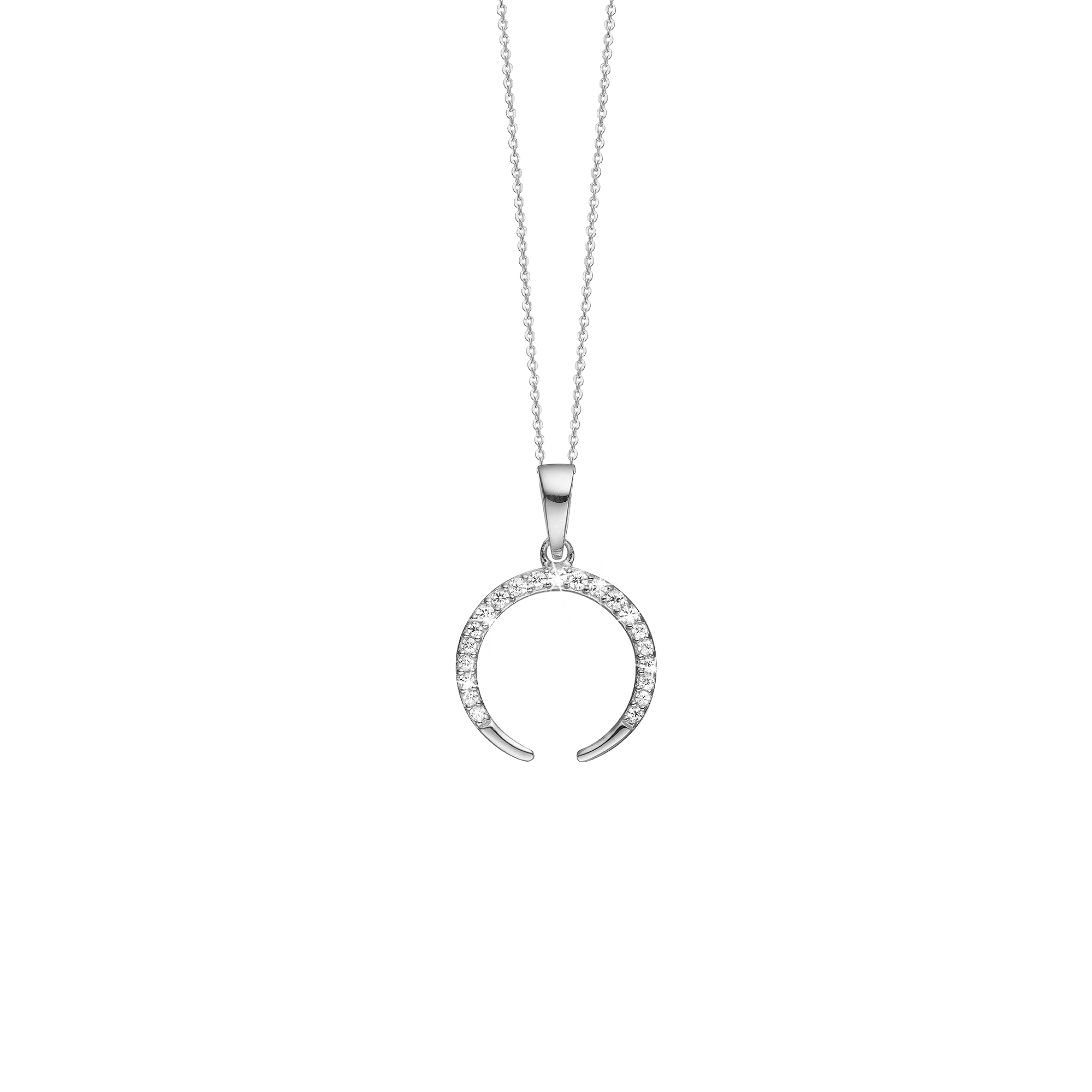 Halskæde, cz horn, 21 cz, sølv, fra aagaard