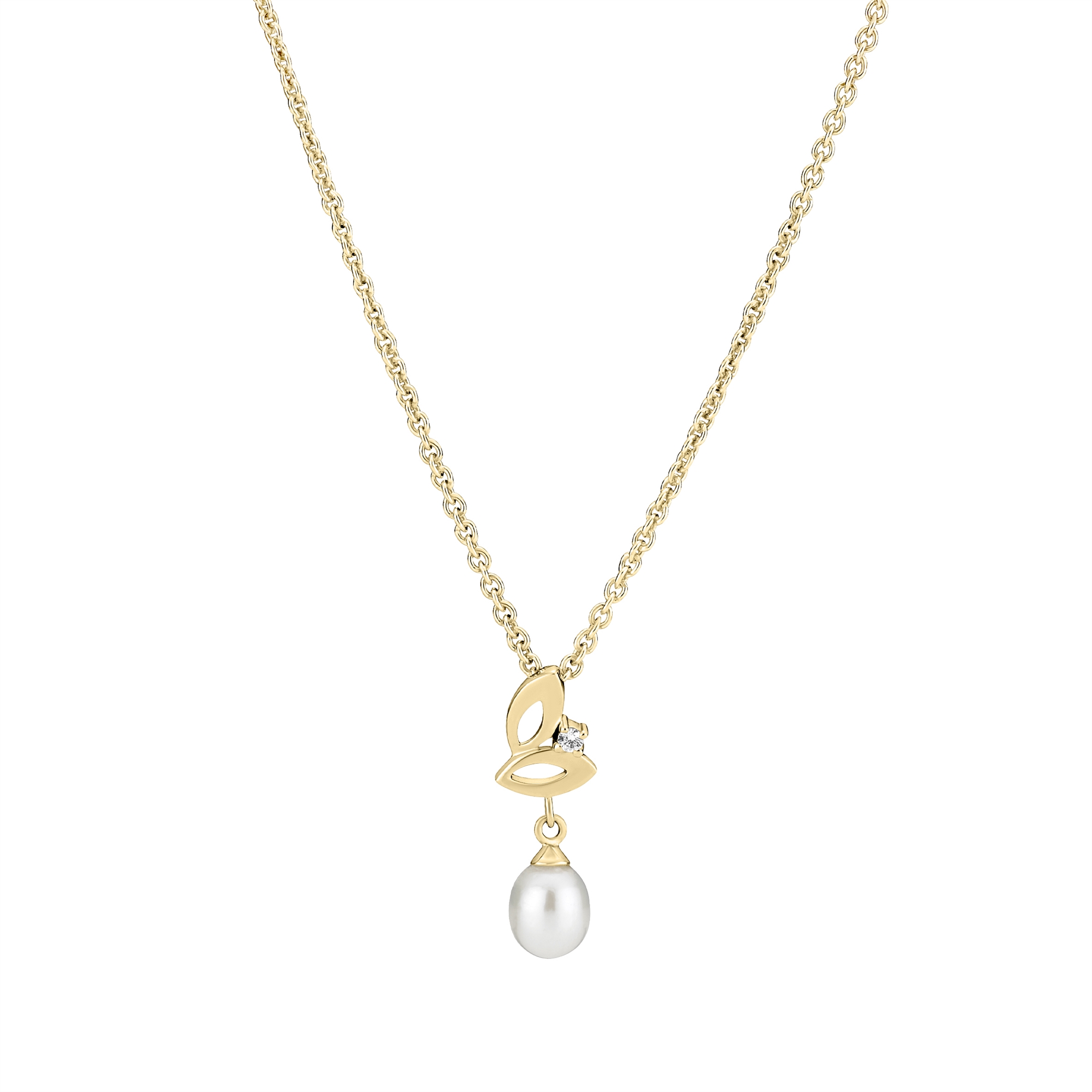 Halskæde med Ferskvandsperle og Zirkonia