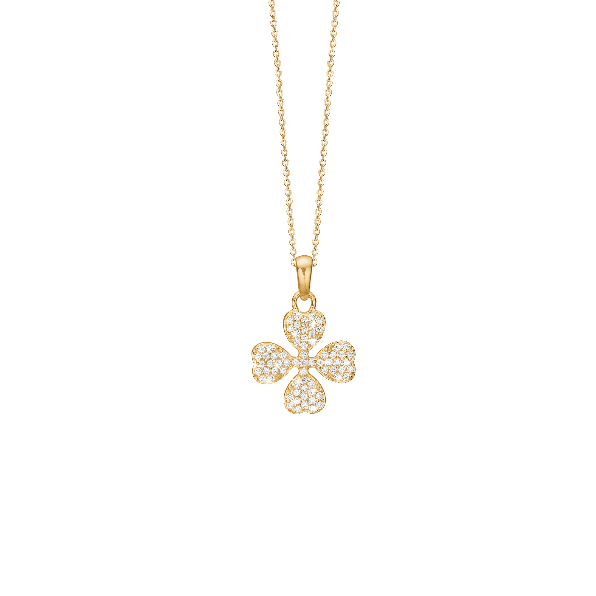 Fra Aagaard Halskæde, firkløver m/CZ, forg sølv