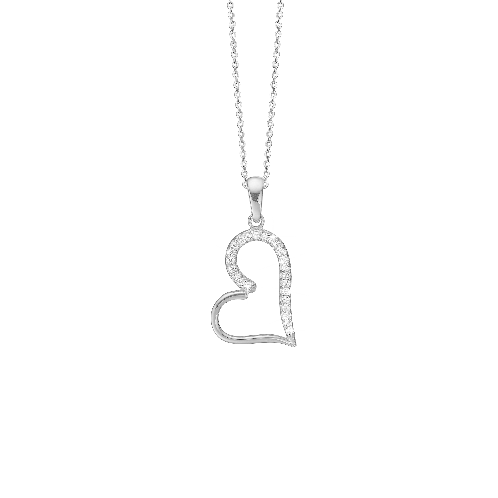 Halskæde med hjerte m/cz, sølv, fra aagaard