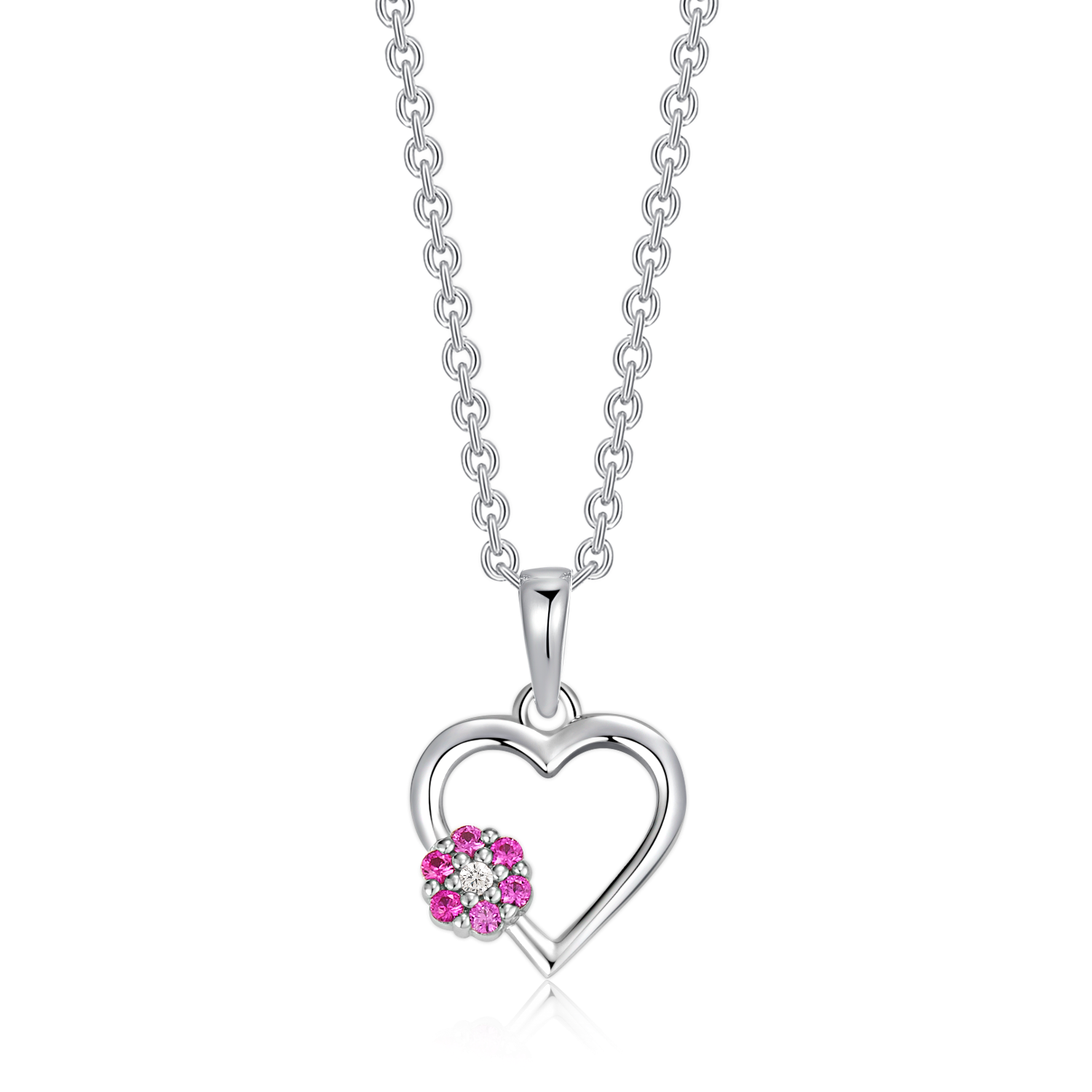 Hjerte vedhæng med blomst og zirkonia, 42-45 cm kæde