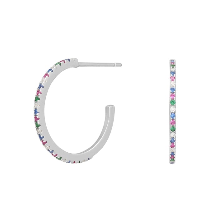 Smukke åbne creoler med flotte farverige sten, 18 mm i diameter