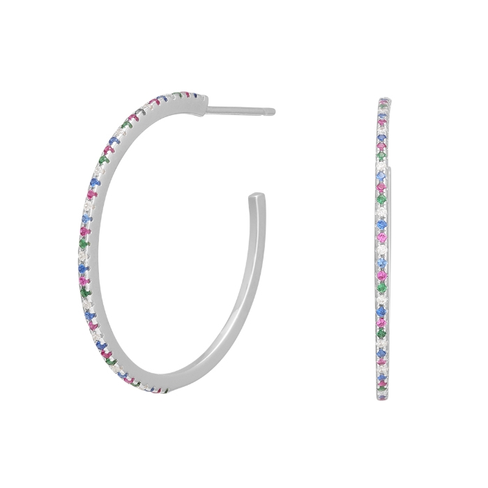 Smukke åbne creoler med flotte farverige sten, 18 mm i diameter