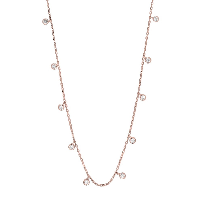 Smuk halskæde med masser af små vedhæng med glitrende zirkonia, længde 42 + 3 cm