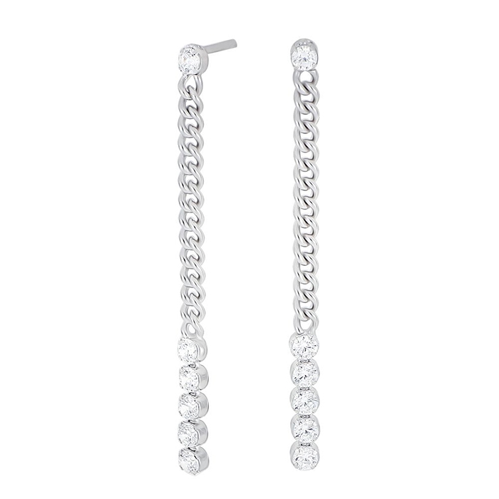 Smukke og top moderne ørestikker med kæde og glitrende hvide zirkonia. Længde 45 mm