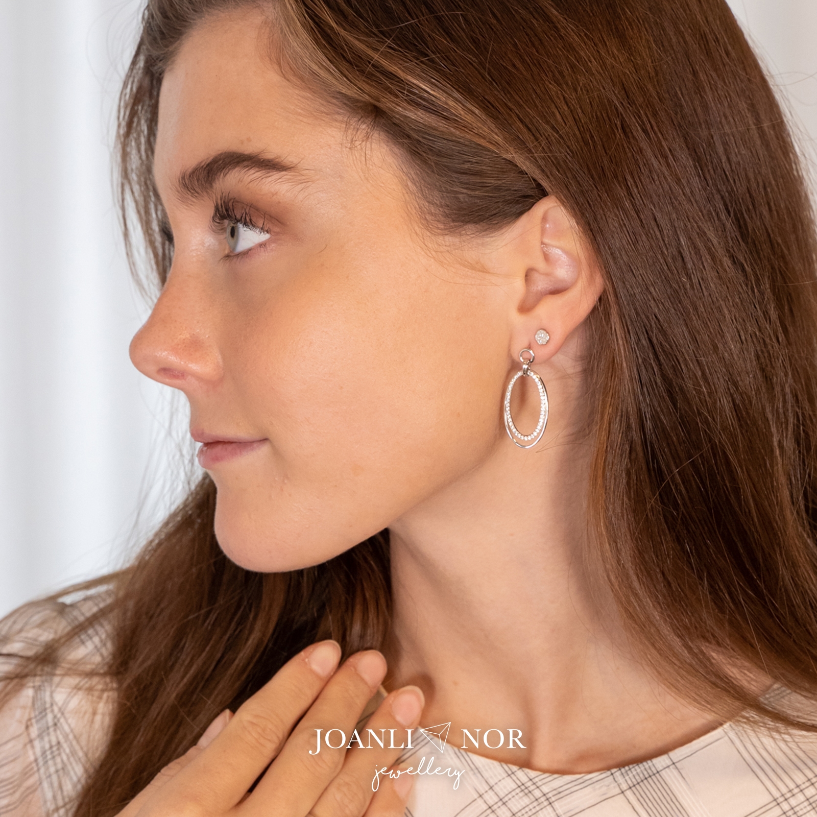 Smukke runde ørestikker med rustik overflade og glitrende zirkonia, måler ø 4 mm
