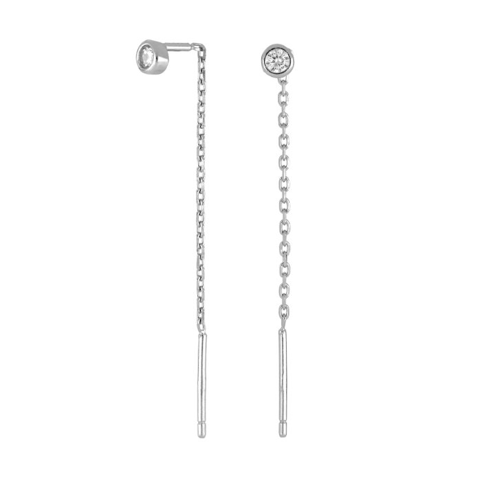 Smukke og elegante ørekæder i sølv med glimtrende, hvide zirkonia