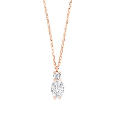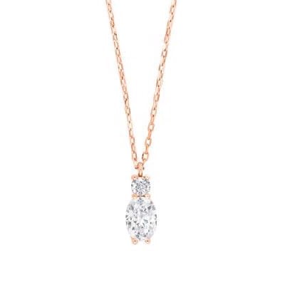 Særligt Rosaforgyldt sølv vedhæng med hvide zirkonia og kæde