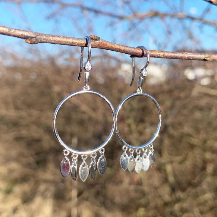 Flotte ørehængere med 5 små "Dancing Leafs". Cirklerne måler Ø 22 mm og har en fin lille zirkonia øverst. , Ø 22 mm