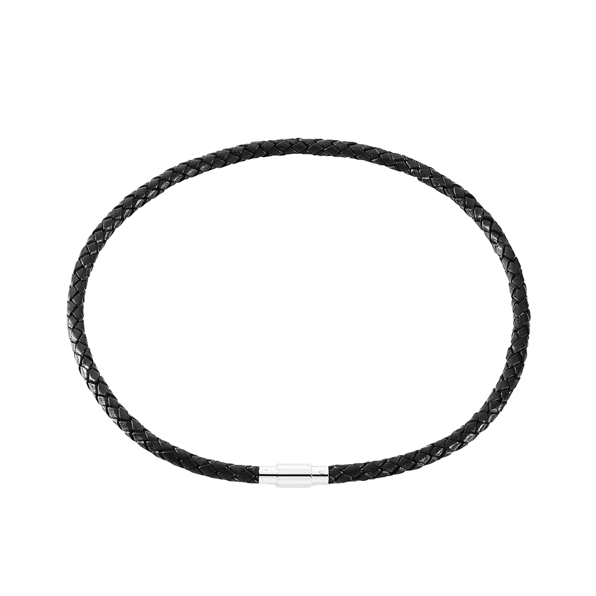 Læder collier sort flet m/stål lås, fra aagaard