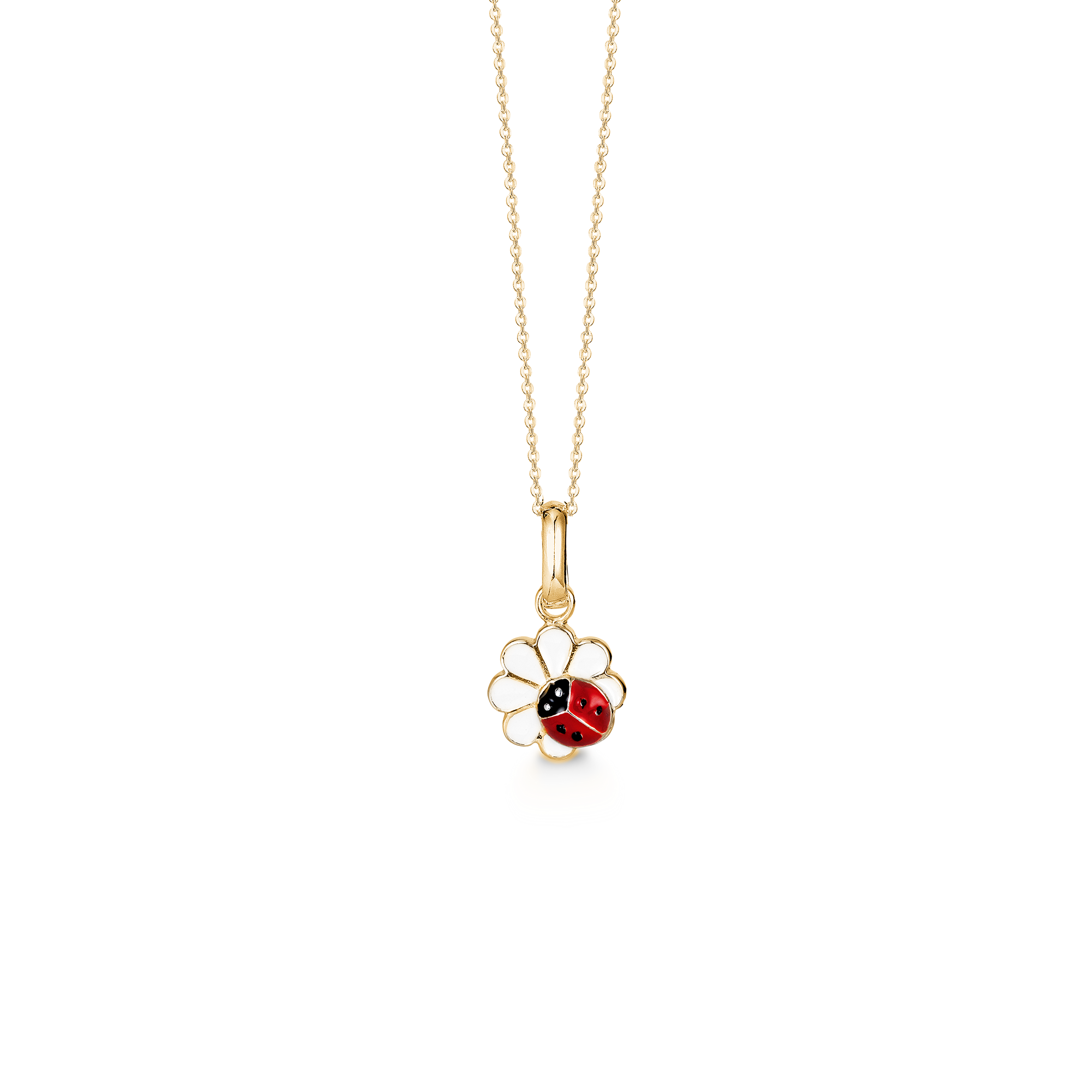 Fra Aagaard Mariehøne blomst, halskæde forgyldt sølv