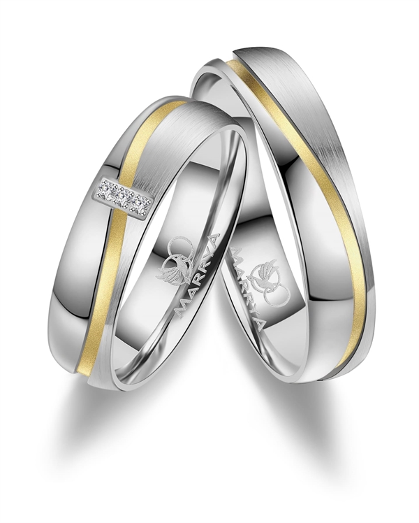 Rustfri stål med 14 kt forgyldning Vielsesringe fra Houmann's smykke serie Marrya