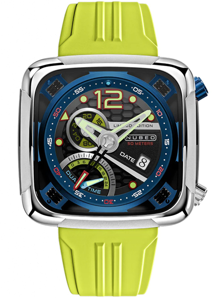 Nubeo NB-6096-01 Mens Watch Ecliptic Dual Time 45mm 5ATM Wristwatch
