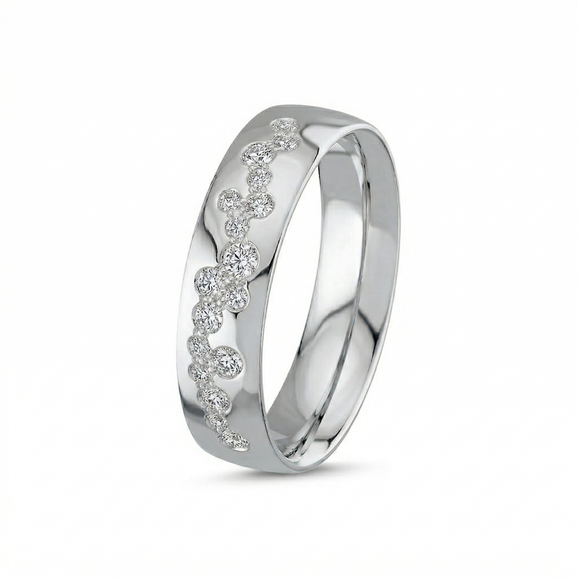• Design: Ringen er prydet med 19 brillant slebne diamanter, der tilsammen udgør 0,25 ct. Diamanterne er af høj kvalitet (Wesselton/VS) og er sikkert fattet for at modstå hverdagens slid og stød.