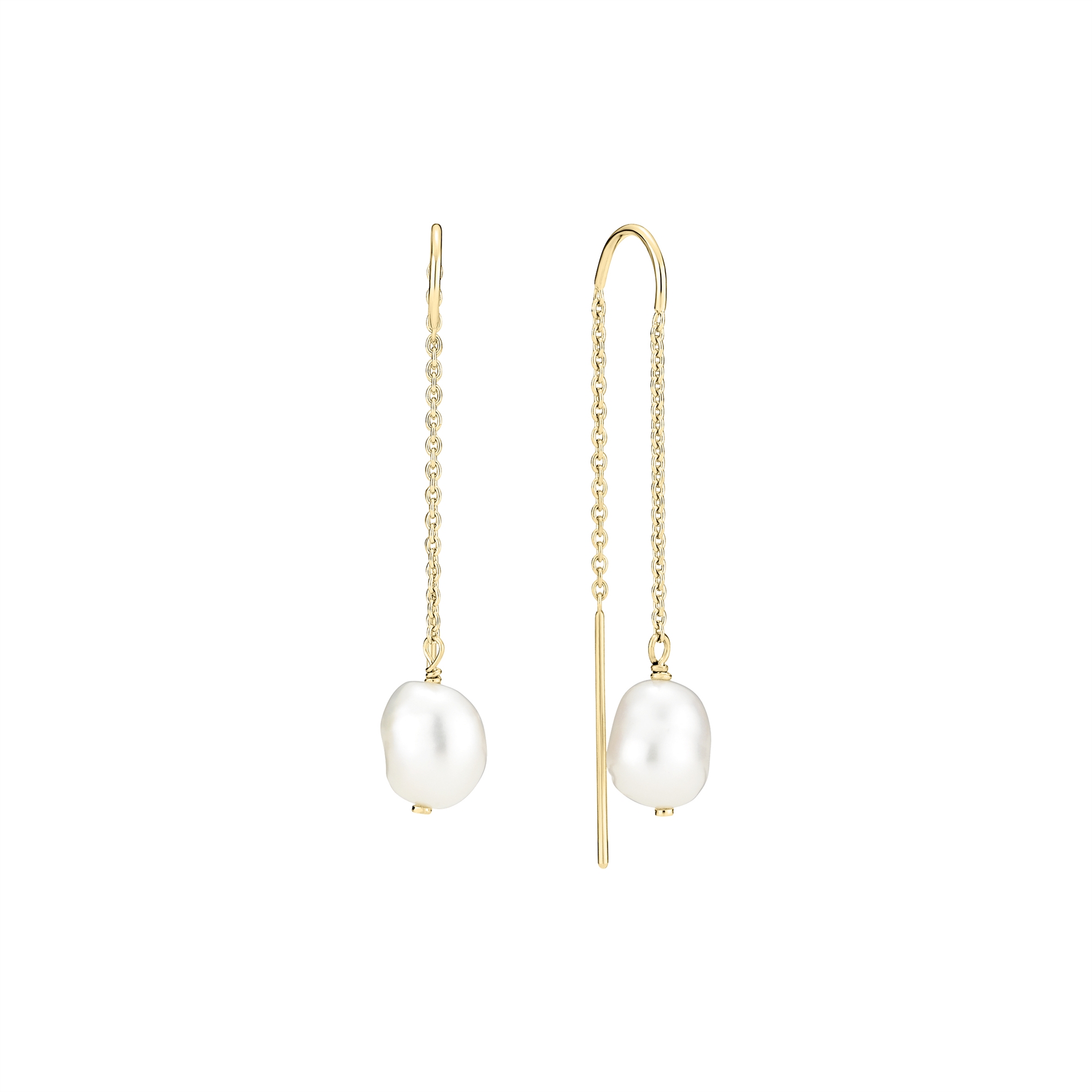Opdag den tidløse elegance med disse eksklusive ørehængere fra Lund Copenhagen. Hver ørehænger er omhyggeligt designet med en strålende 8,5-9mm ferskvandsperle, der tilfører et touch af klassisk skønhed til ethvert outfit. Ørehængerne er forgyldt med ægte 925 sølv, som er beriget med funklende zirkonia sten, der tilføjer et glamourøst skær til designet.