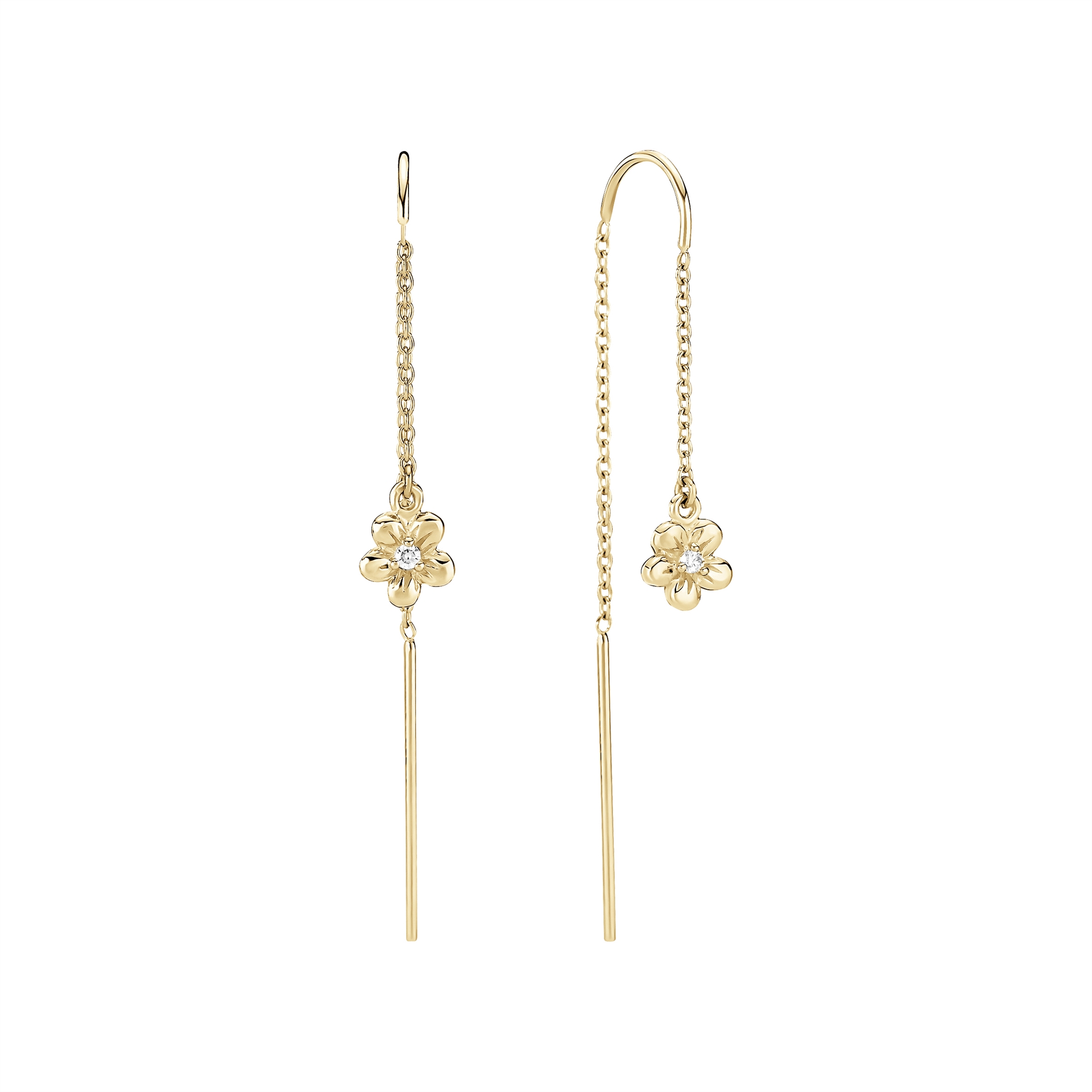 Ørehænger kæde med blomst og diam 8 karat fra Lund Copenhagen