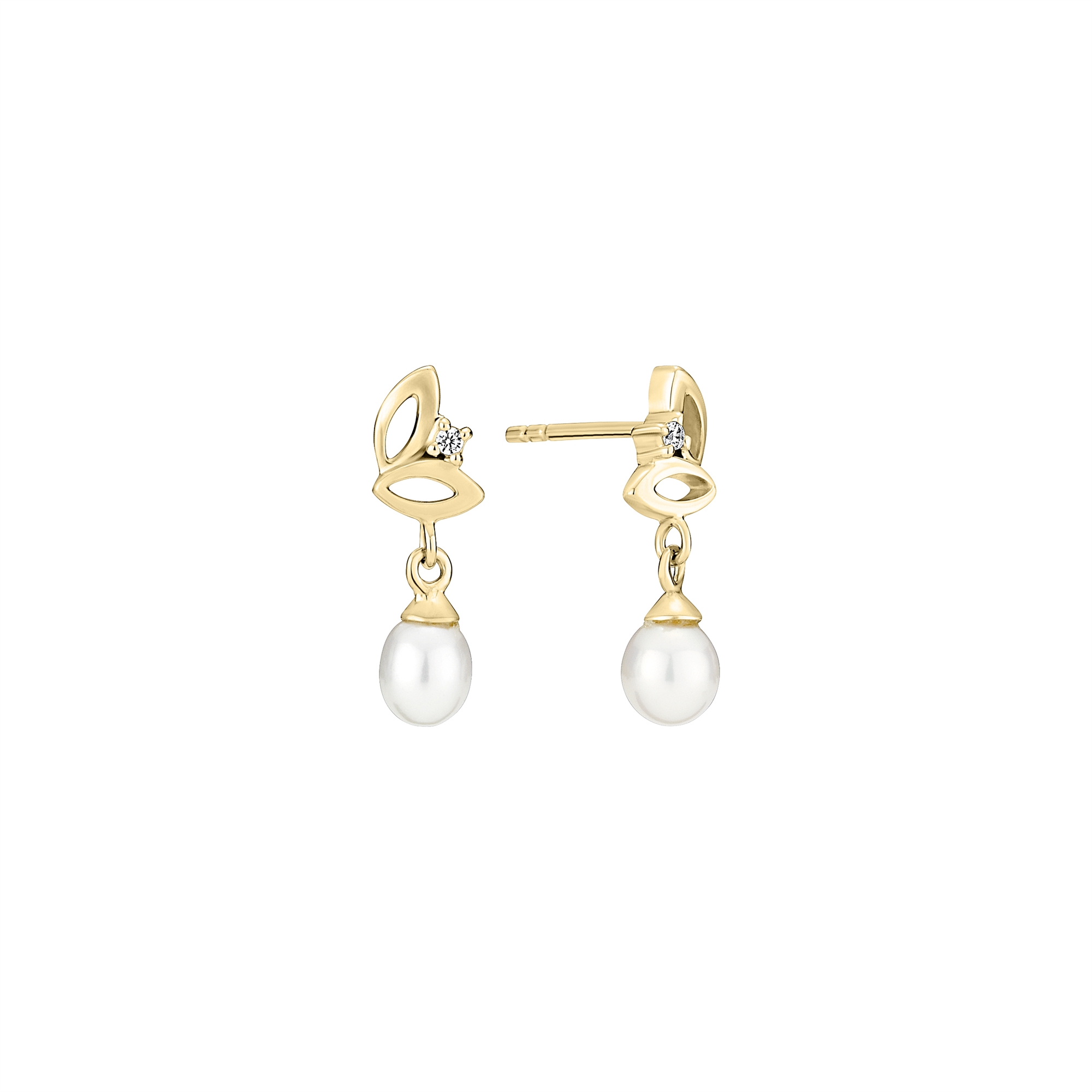 Ørestik ferskvands perle 4-4,5mm zirkonia forgyldt 925 sølv, fra Lund Copenhagen