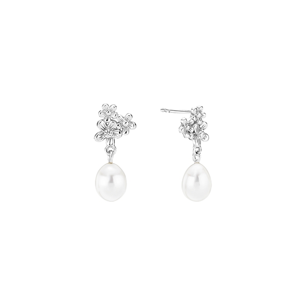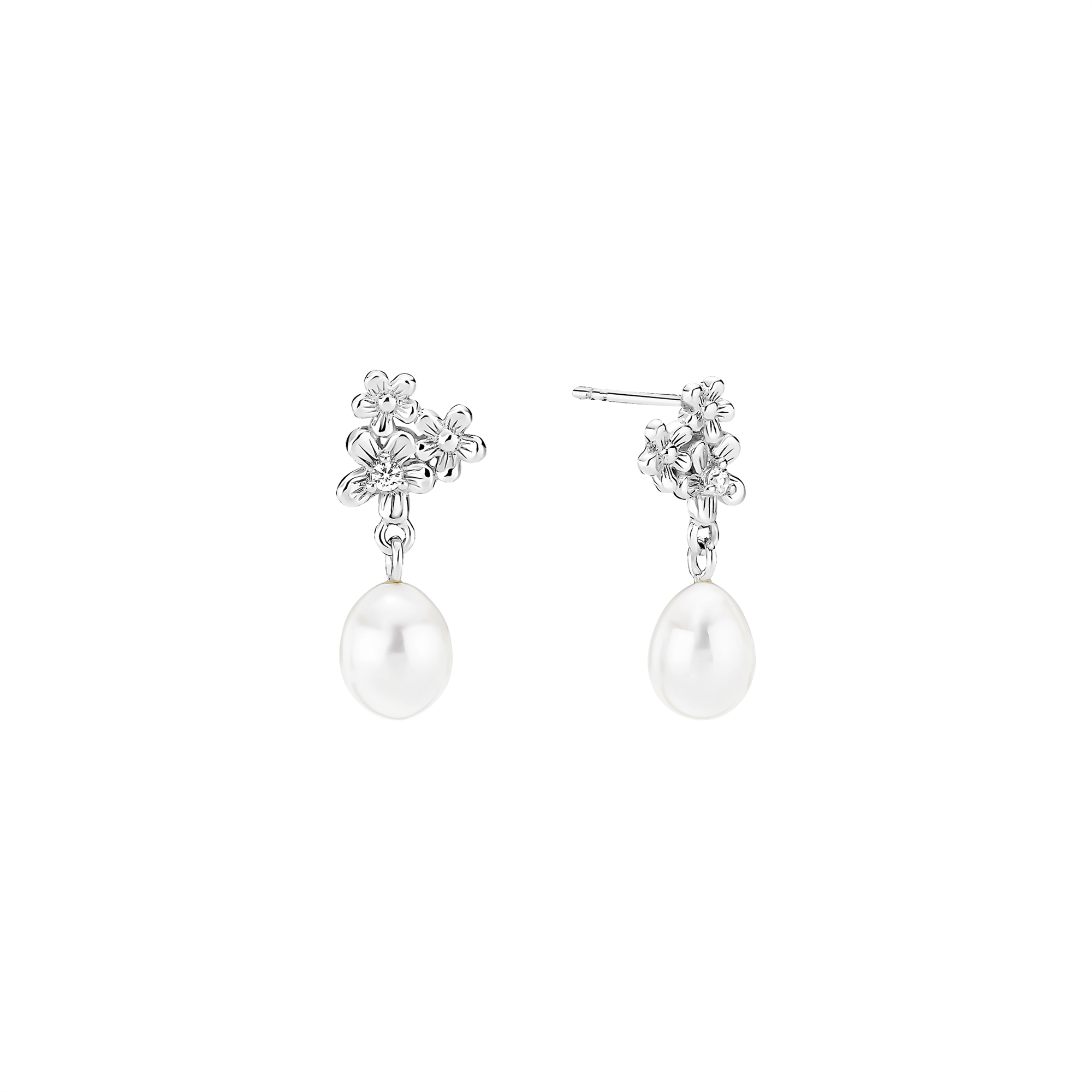 Ørestik med ferskvandsperle 6,5-7mm og zirkonia sterling sølv fra Lund Copenhagen