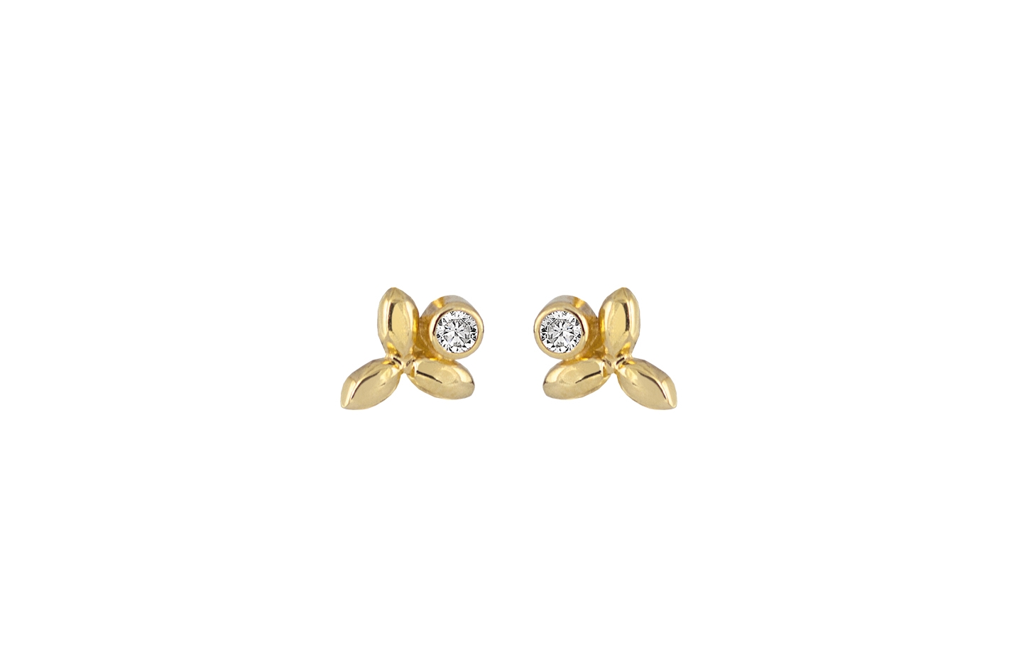 Disse eksklusive ørestikker i forgyldt sterlingsølv forener luksuriøst design med enestående komfort. Den centrale 2,5 mm zirkonia-sten omkranses smukt af tre delikate kronblade, der skaber et sofistikeret udtryk. Det hudvenlige materiale sikrer behagelig brug, selv gennem lange dage.