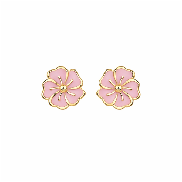 Ørestik sølv forgyldt rosa blomst, fra L&G