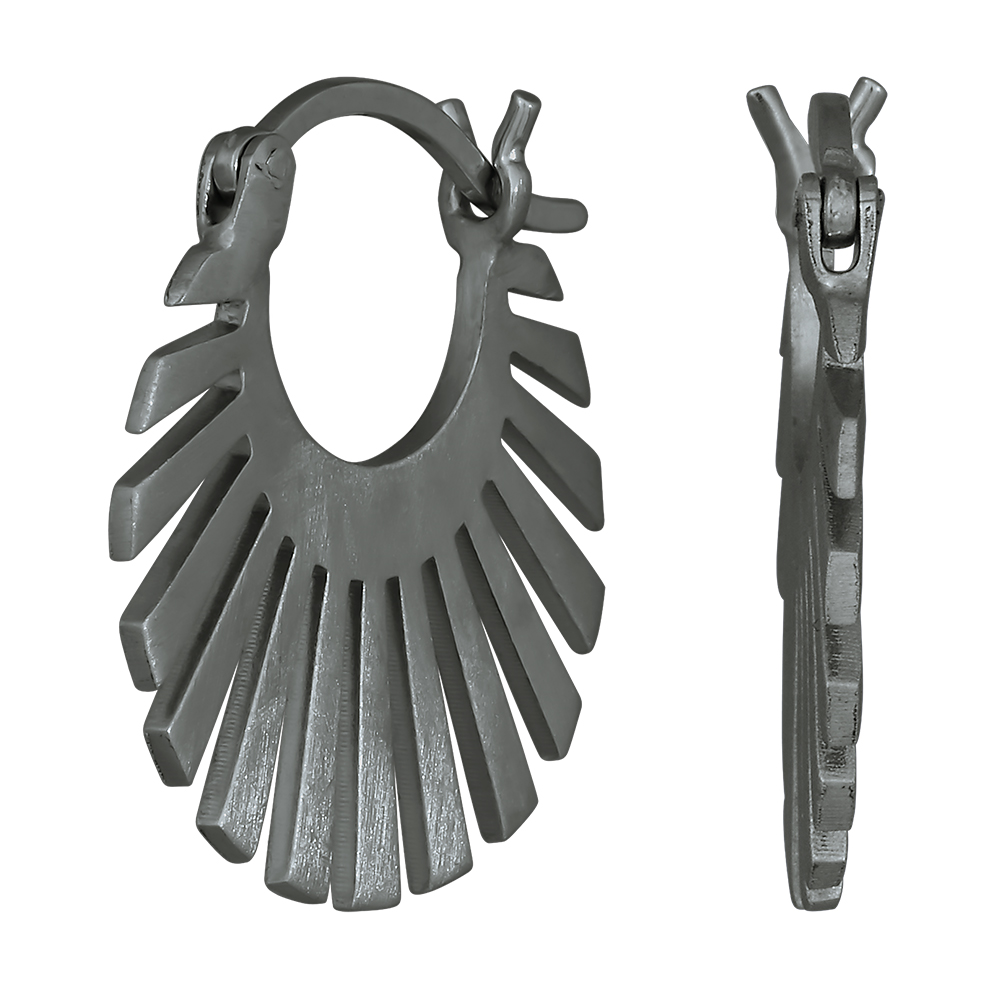 Creol med et unikt sol inspireret design. Creolerne fra vores SUN52-serie i oxyderet sølv er skabt som en abstrakt og minimalistisk fortolkning af solen. Smykkets matte overflade giver designet kant og får det til at skille sig ud. Creolerne måler 20 mm i diameter.