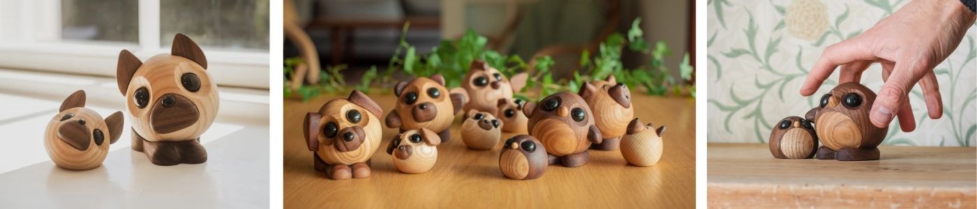 Materialer i topklasse Pick-Me-Up figurerne er primært fremstillet i valnød og ask, hvilket giver en smuk kontrast i træets årer og farver. Den magnetiske funktion er diskret indbygget, så du kan dreje hovedet eller ændre figurens holdning, hvilket giver dem deres unikke og "levende" personlighed. Det er små kunstværker, der inviterer til berøring og leg, uanset om de står på reolen, natbordet eller kontorbordet.