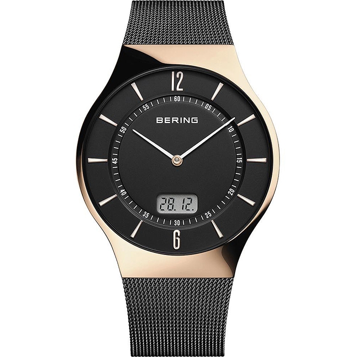 Et Rosaforgyldt stål Herre ur fra Bering med Sort urskive og Batteridrevet quartz urværk