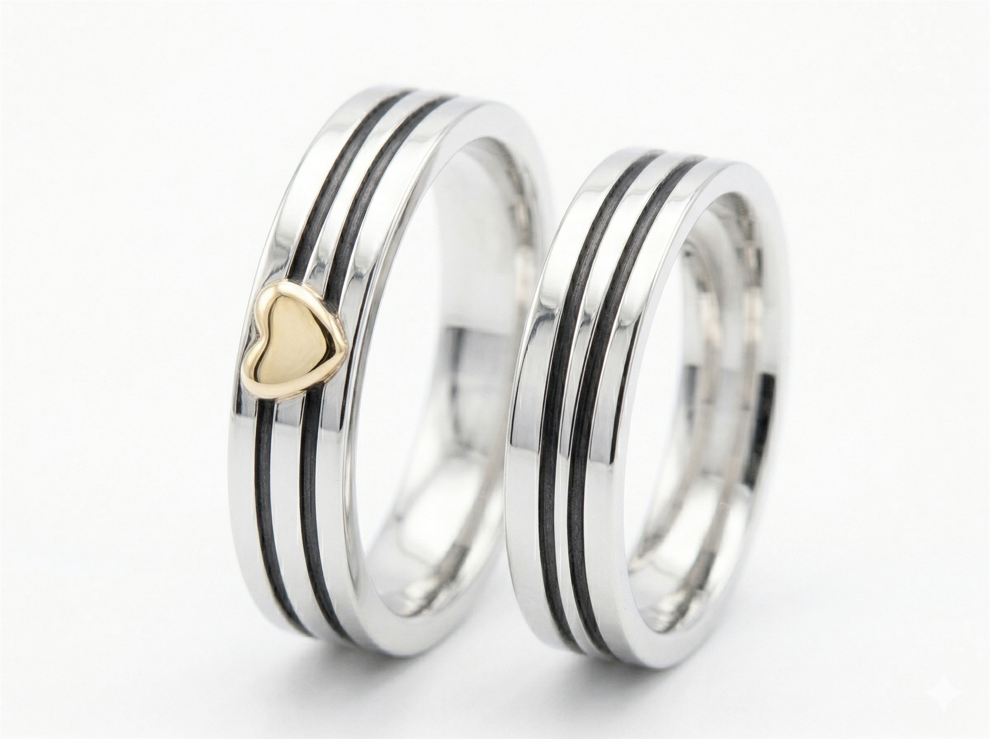 Et perfekt valg til jer, der ønsker vielsesringe med personlighed og symbolik. Hjertet tilføjer en romantisk detalje, mens det skrå mønster giver et moderne twist.