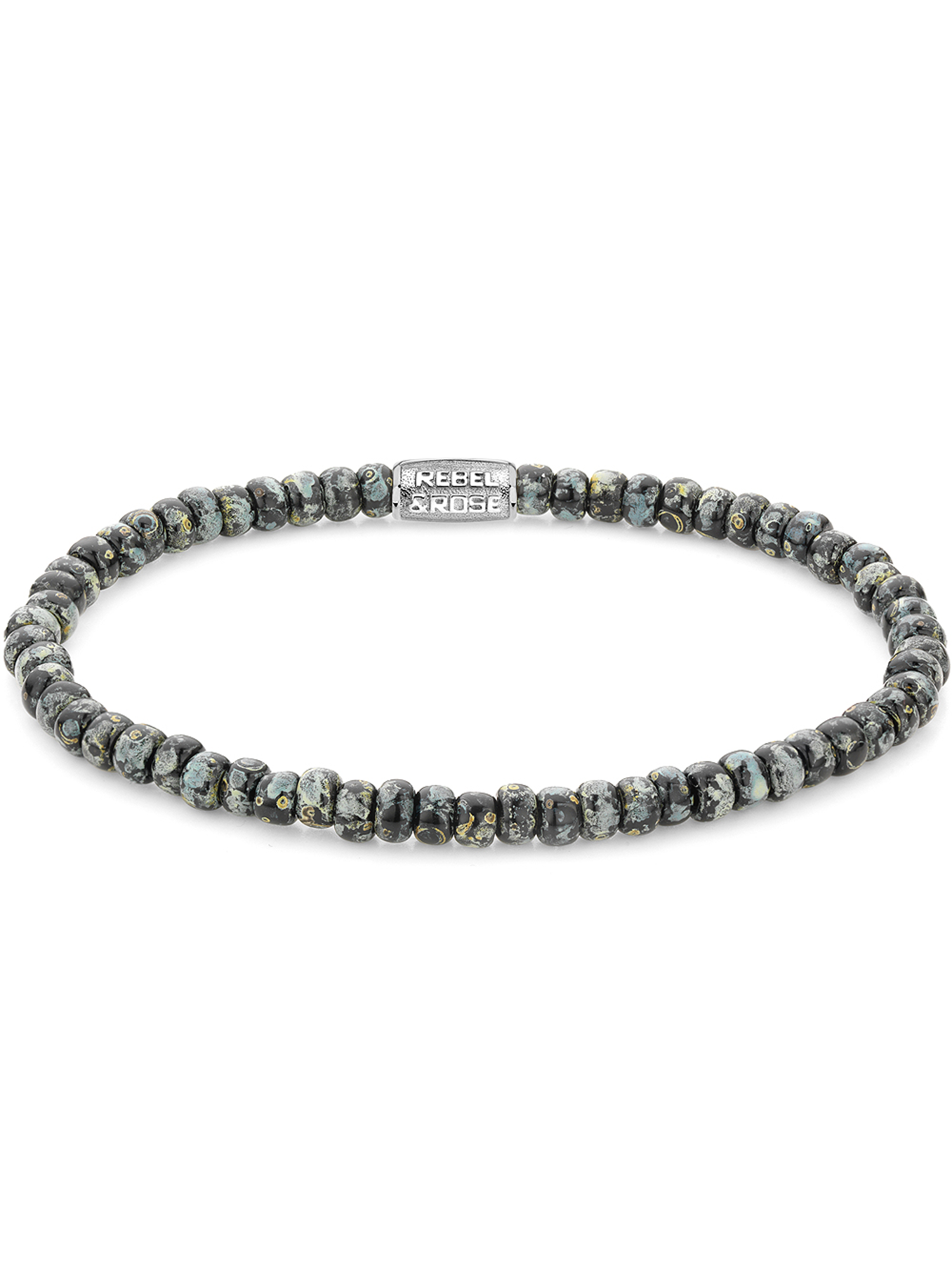 Rebel & Rose Bracelet Glass Rocks Black Leopard RR-40116-S-M Unisex Bracelet