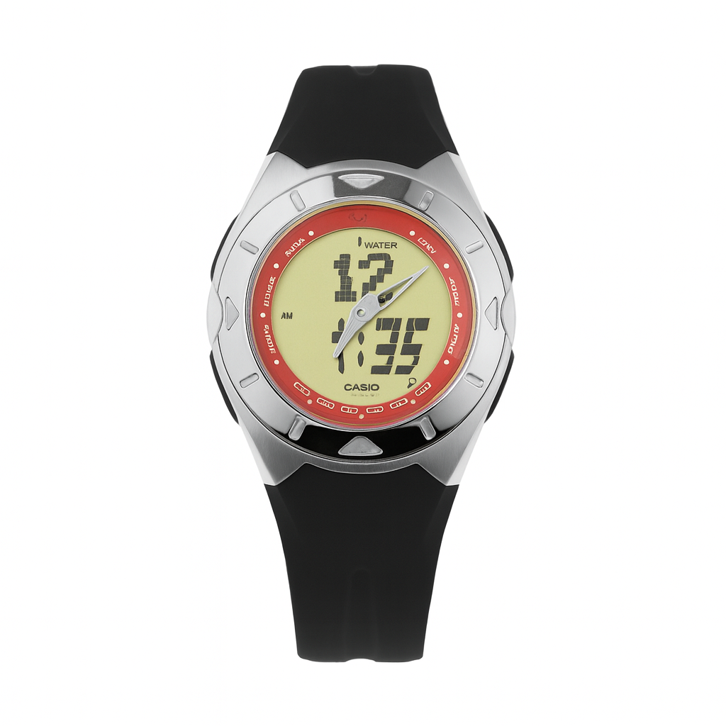 Et Resin Herre ur fra Casio med Grå med rød ydrekrans urskive og Quartz urværk