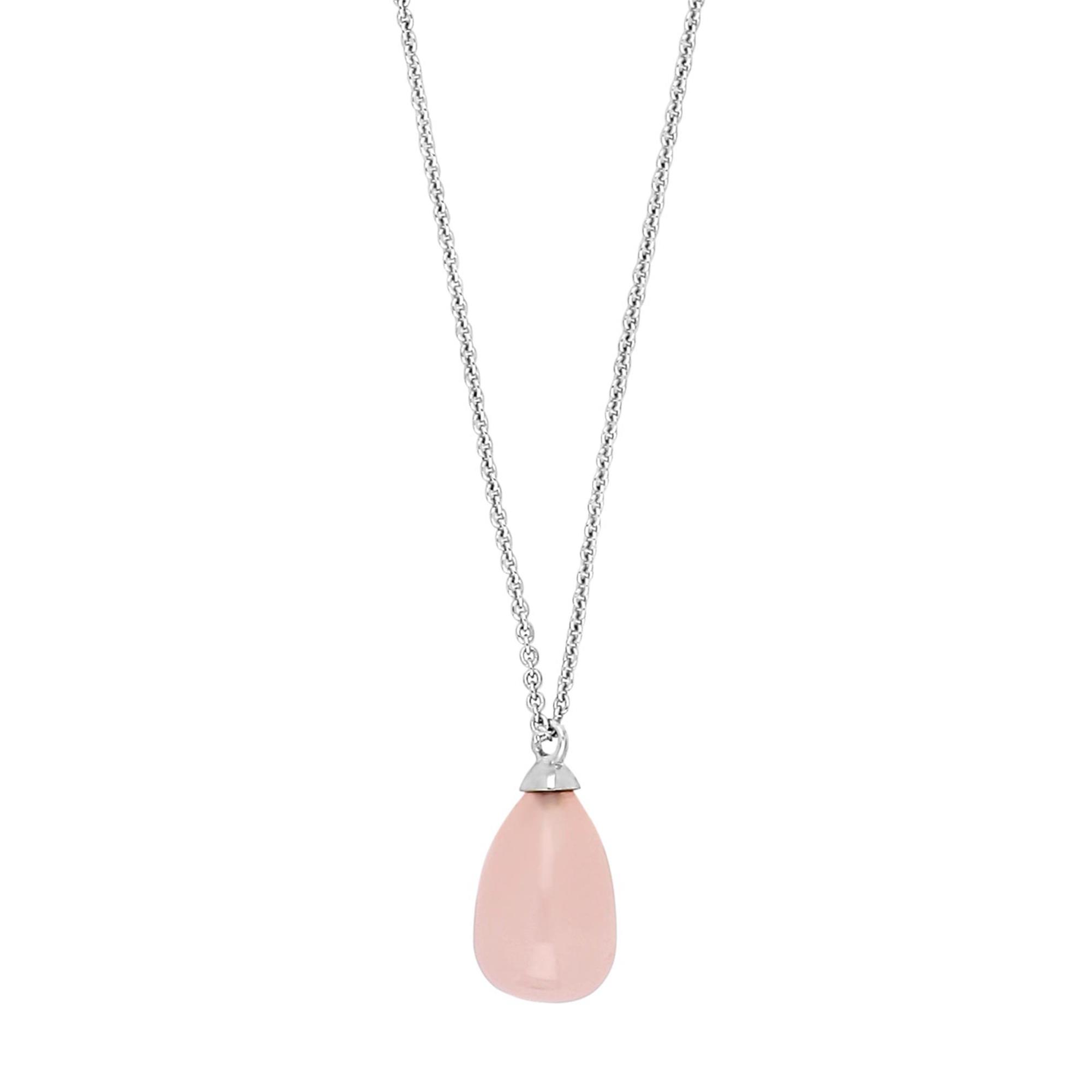 Feminin og smuk halskæde i sølv med dråbeformet rosa kvarts sten. Den lyserøde smykkesten er simpelthen så flot, og så siges det også at være en kærlighedssten, der styrker forbindelsen mellem dig og dine kære. Den ele