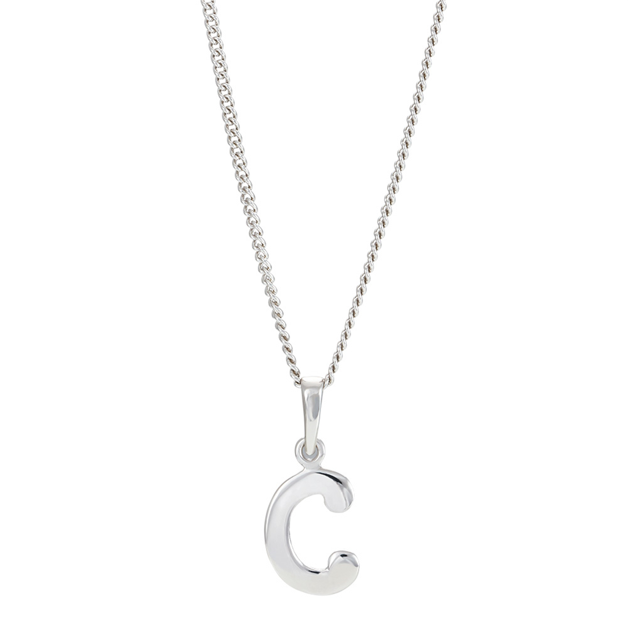 Rhod. sølvbogstav C 12mm inkl. kæde , fra Siersbøl