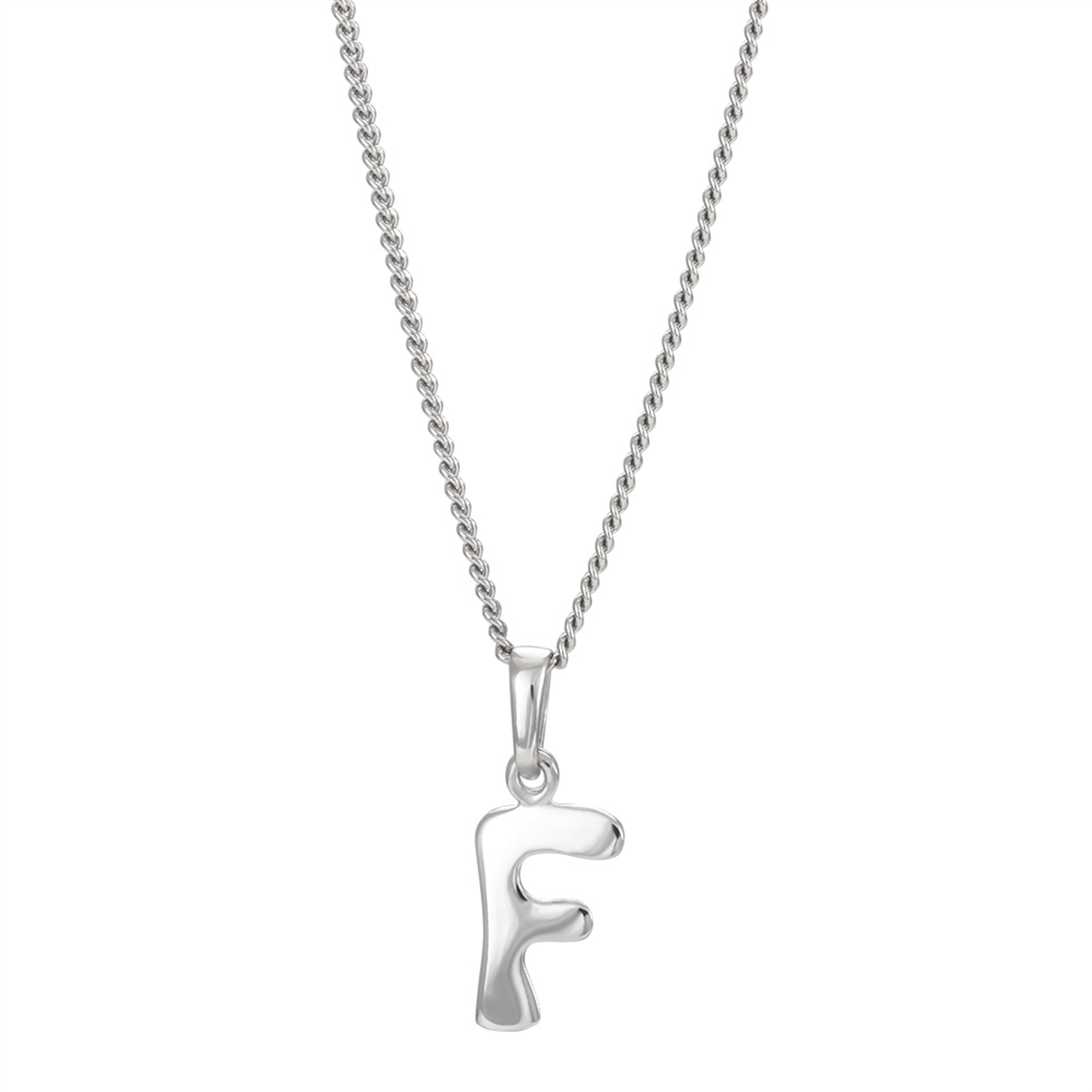 Rhod. sølvbogstav F 12mm inkl. kæde , fra Siersbøl