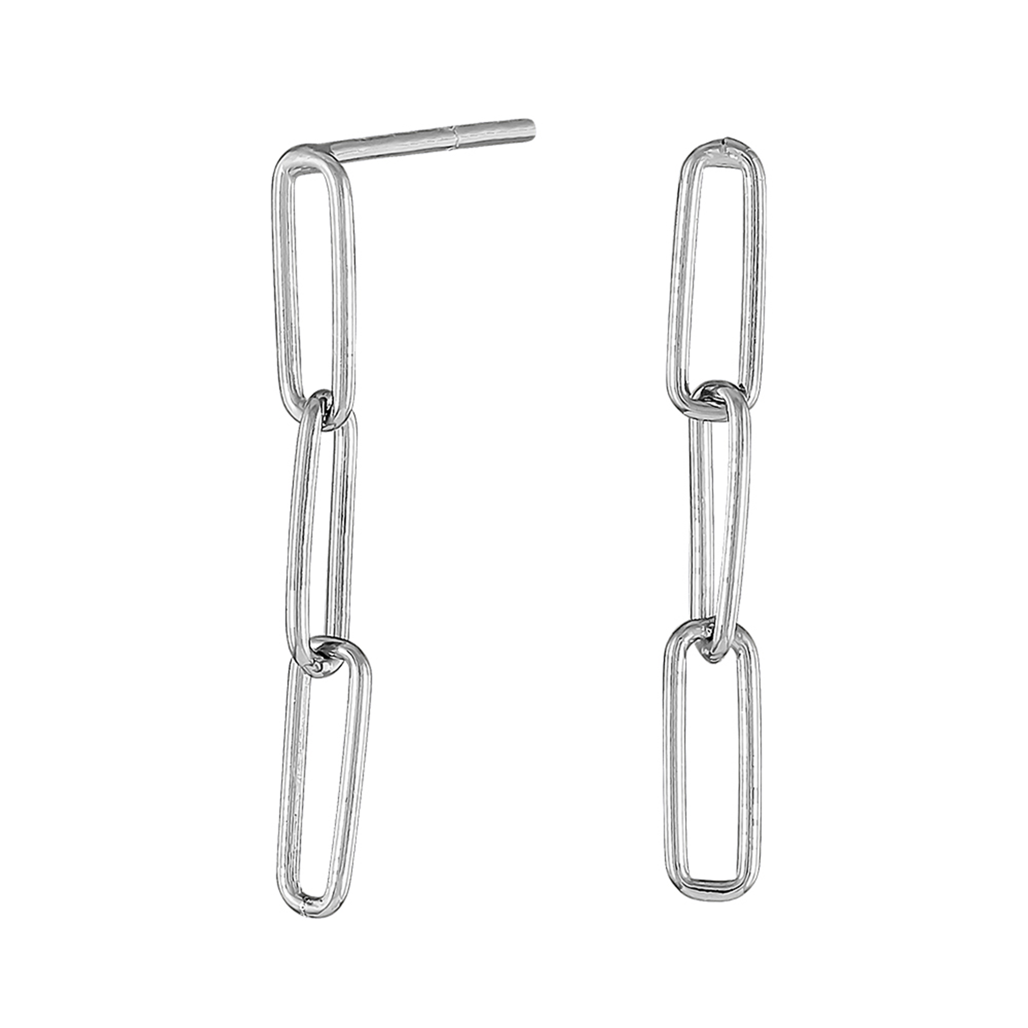 Smykker med raffineret kant. Ørehængerne fra vores BOND52-serie i rhodineret sølv er sammensat af tre bevægelige rektangulære led. De er perfekte til at give kant og struktur til dit look. Hvert led måler ca. 10 x 3 mm