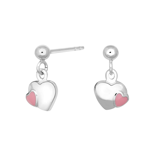 Rhod. sølvørehænger hjerte m/pink emalje, fra Noa Kids