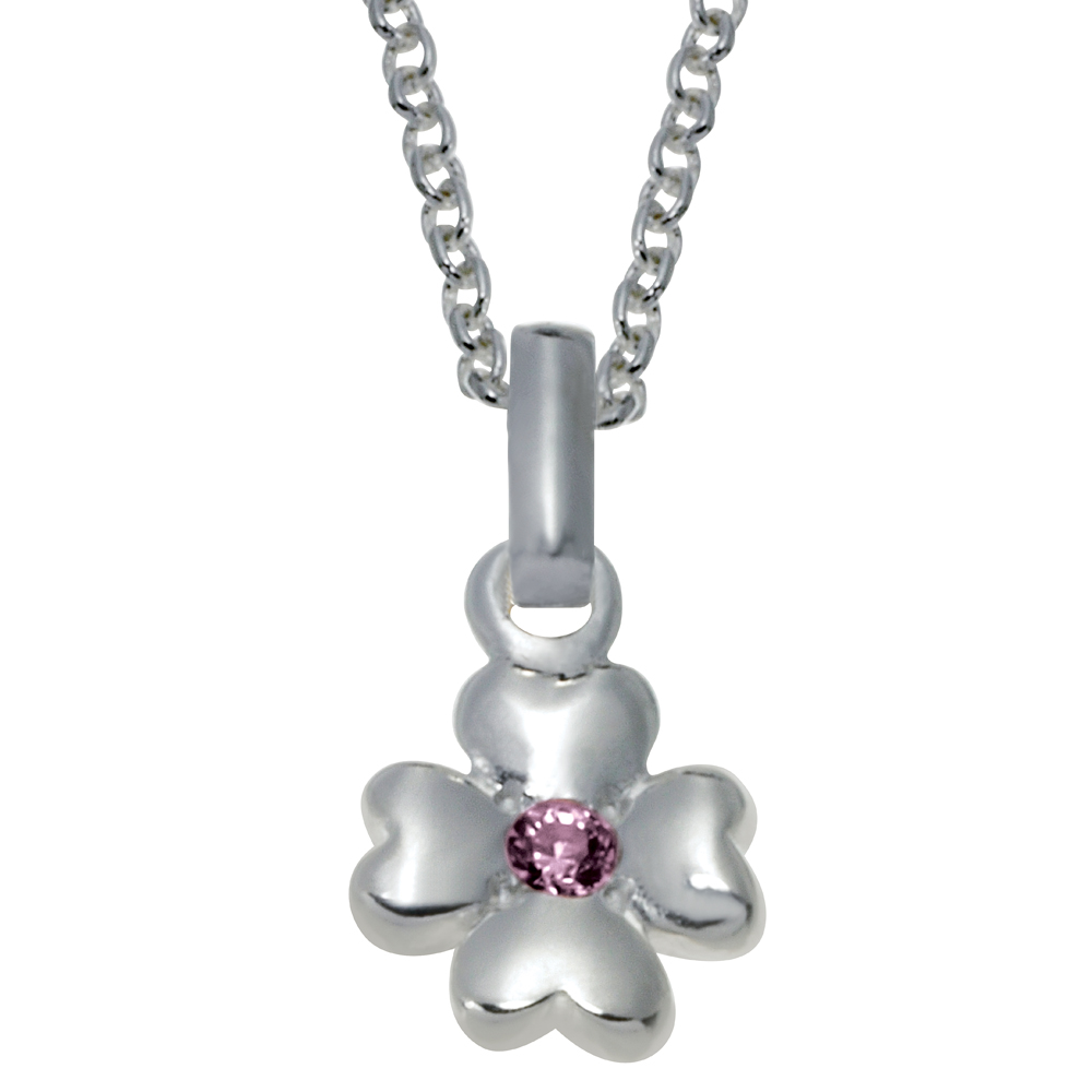 Rhod. sølvvedhæng blomst m/lyserød cz inkl. kæde, fra Noa Kids