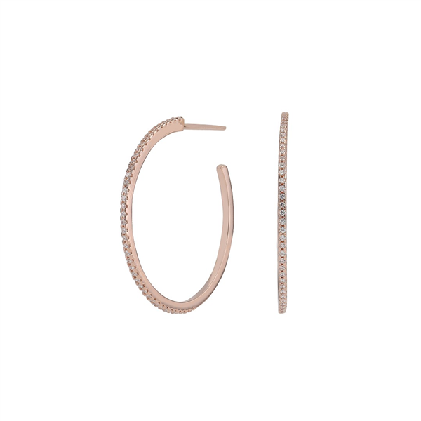 Disse moderigtige creoler, fra vores Adina serie, har et særligt charmerende design. De smukke, åbne rosaforgyldte sølvcreoler er besat med funklende zirkonia sten, som bidrager til sættets feminine udstråling. Creolerne findes i 2 størrelser – d