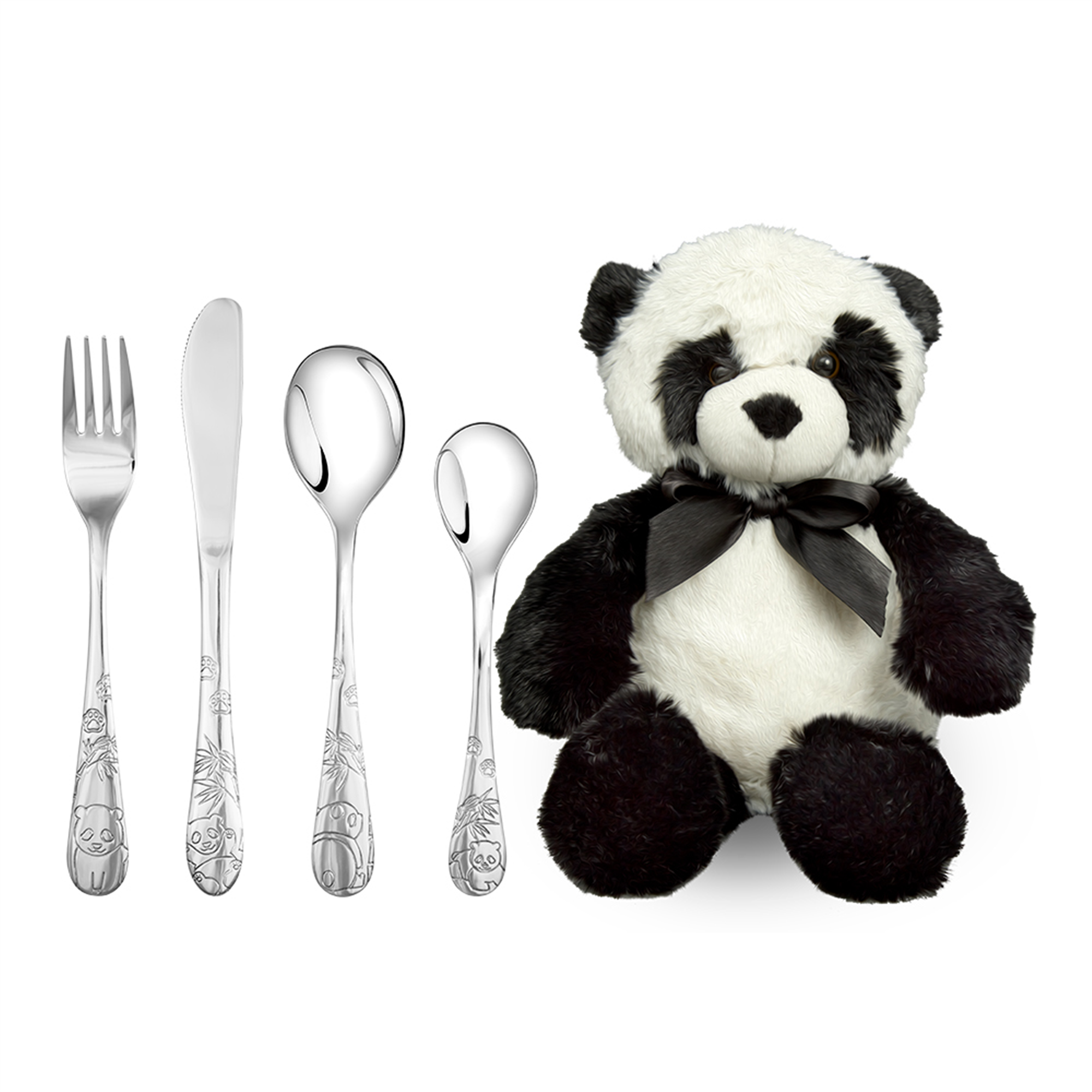 Rustfrit stål bestik m/ panda inkl. bamse, fra Noa Kids