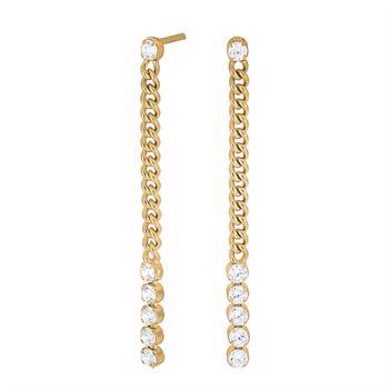 Joanli Nor GINANOR forgyldt sterling sølv Øreringe , ørestikker med kæde og hvide sten