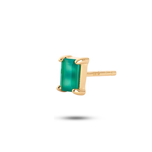 Smuk ørestik med rektangulær grøn agat i elegant fatning. Måler 5 x 3 mm. Pris er pr. stk., 5 x 3 mm