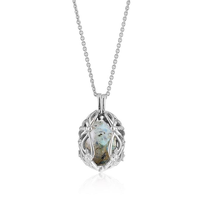 Fint vedhæng i sølv med zirkonia og labradorit. Du kan selv skifte ædelsten i smykket. Labradorit: Stenen siges at virke stimulerende på din kreativitet. Den påvirker dine evner til at udvikle nyt. En meget energi-givende sten, der tiltrækker succes.