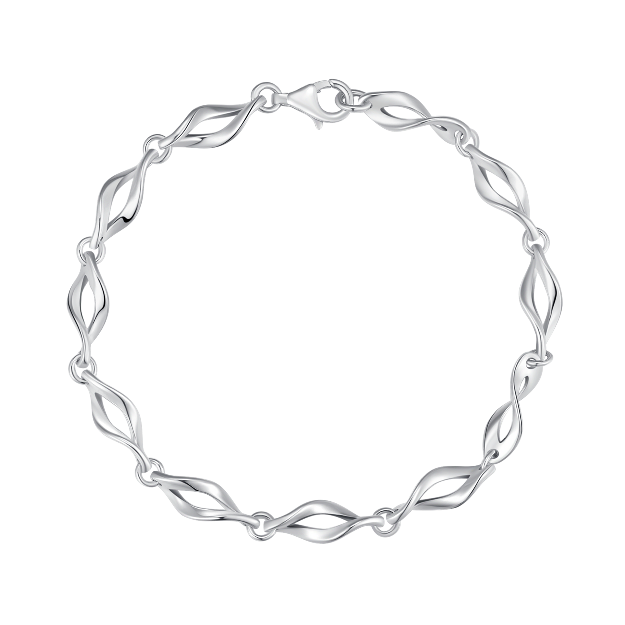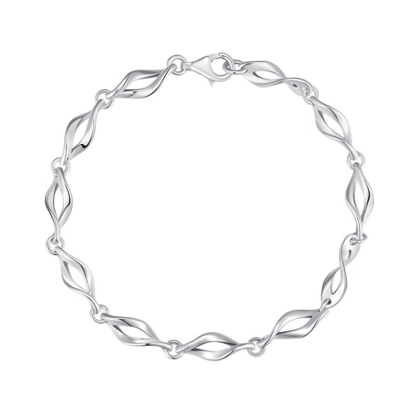 Sølv armbånd rhodineret skæv oval.