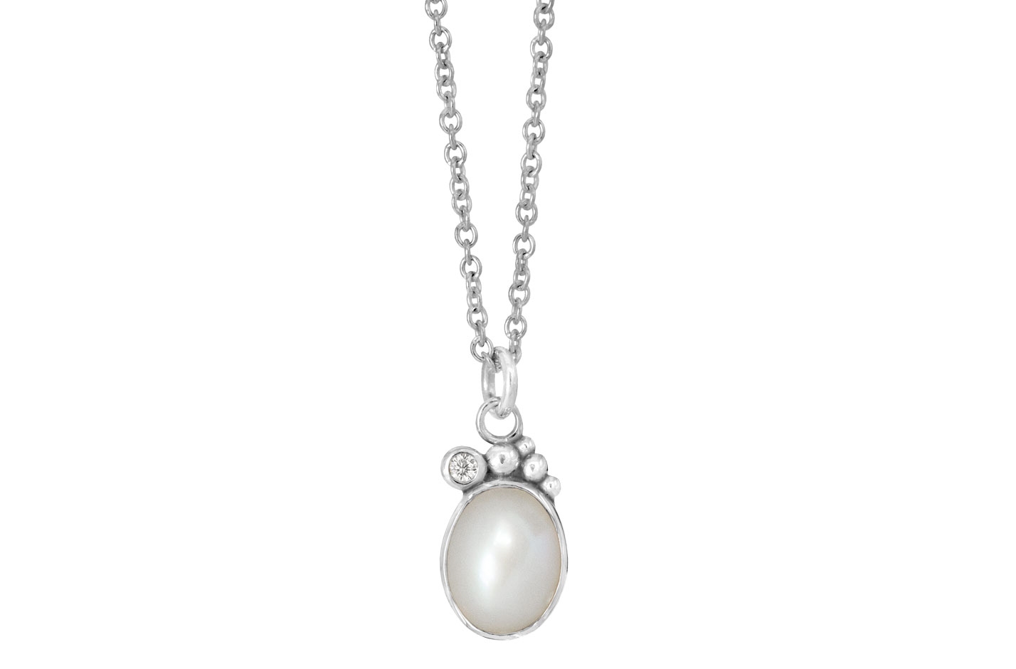Dette Rabinovich collier forener det klassiske med det moderne gennem en hvid ferskvandsperle på 10,5 x 8,5 mm. Det elegante perlevedhæng tilføjer et sofistikeret touch, der passer glimrende til festlige anledninger som bryllupper og jubilæer. Vælg mellem sterlingsølv, forgyldt sterlingsølv eller 14 karat guld for at matche din personlige stil.