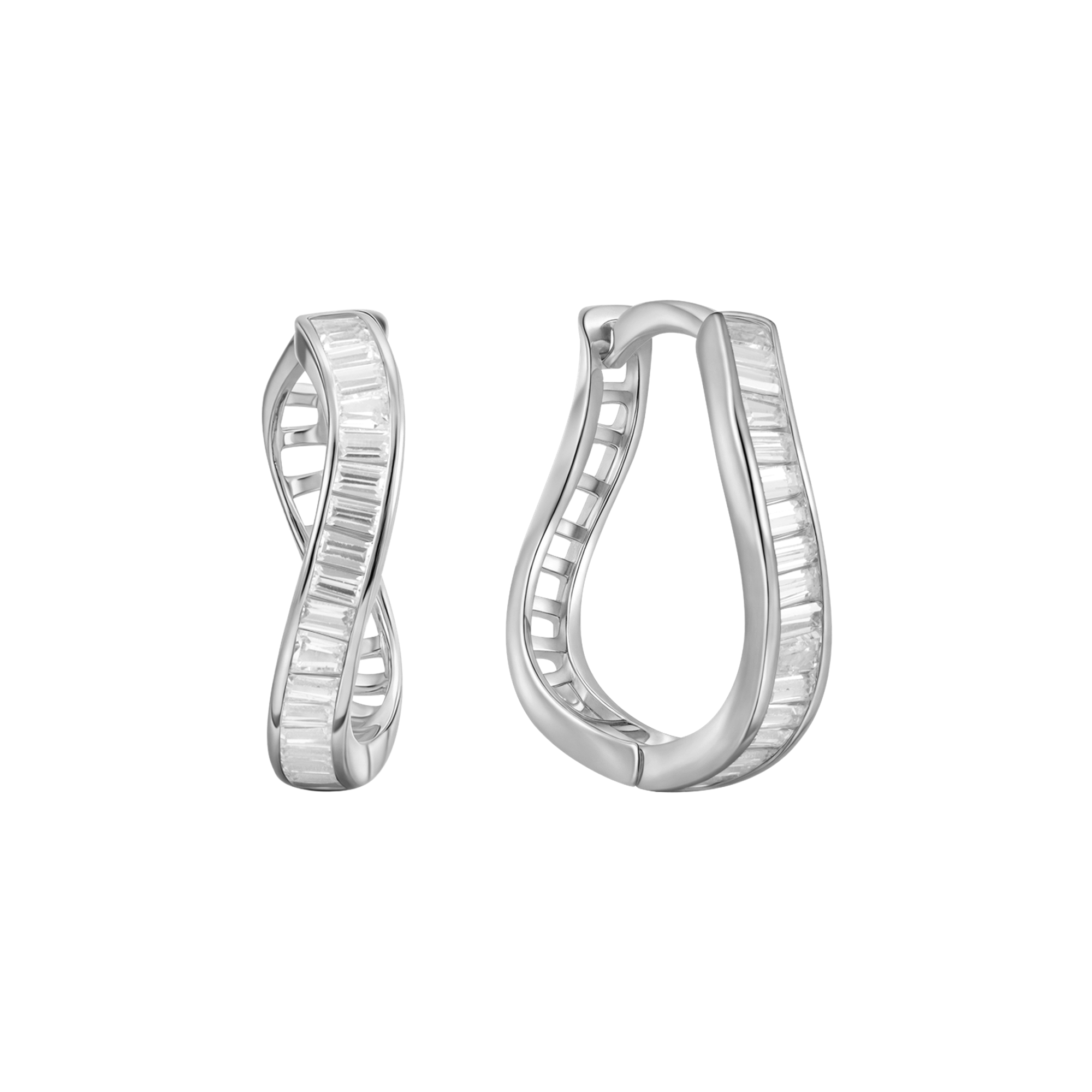 Sølv creoler rhodineret med syntetiske cubic zirconia.