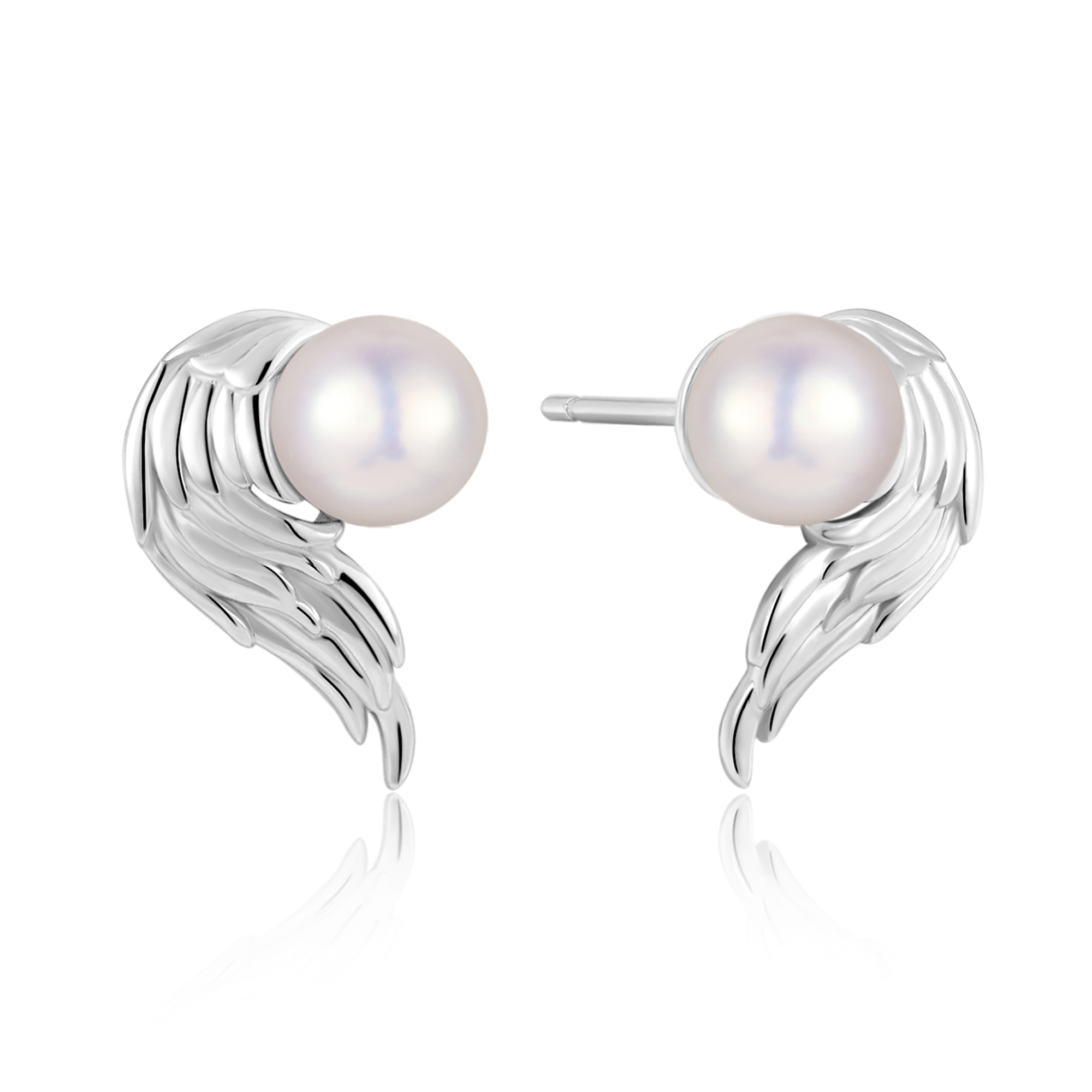 Sølv knækcreoler rhodineret halv hjerte med ferskvandsperle.