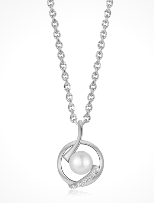 Sølv halskæde rhodineret cirkel med ferskvandsperle og syntetiske cubic zirconia.