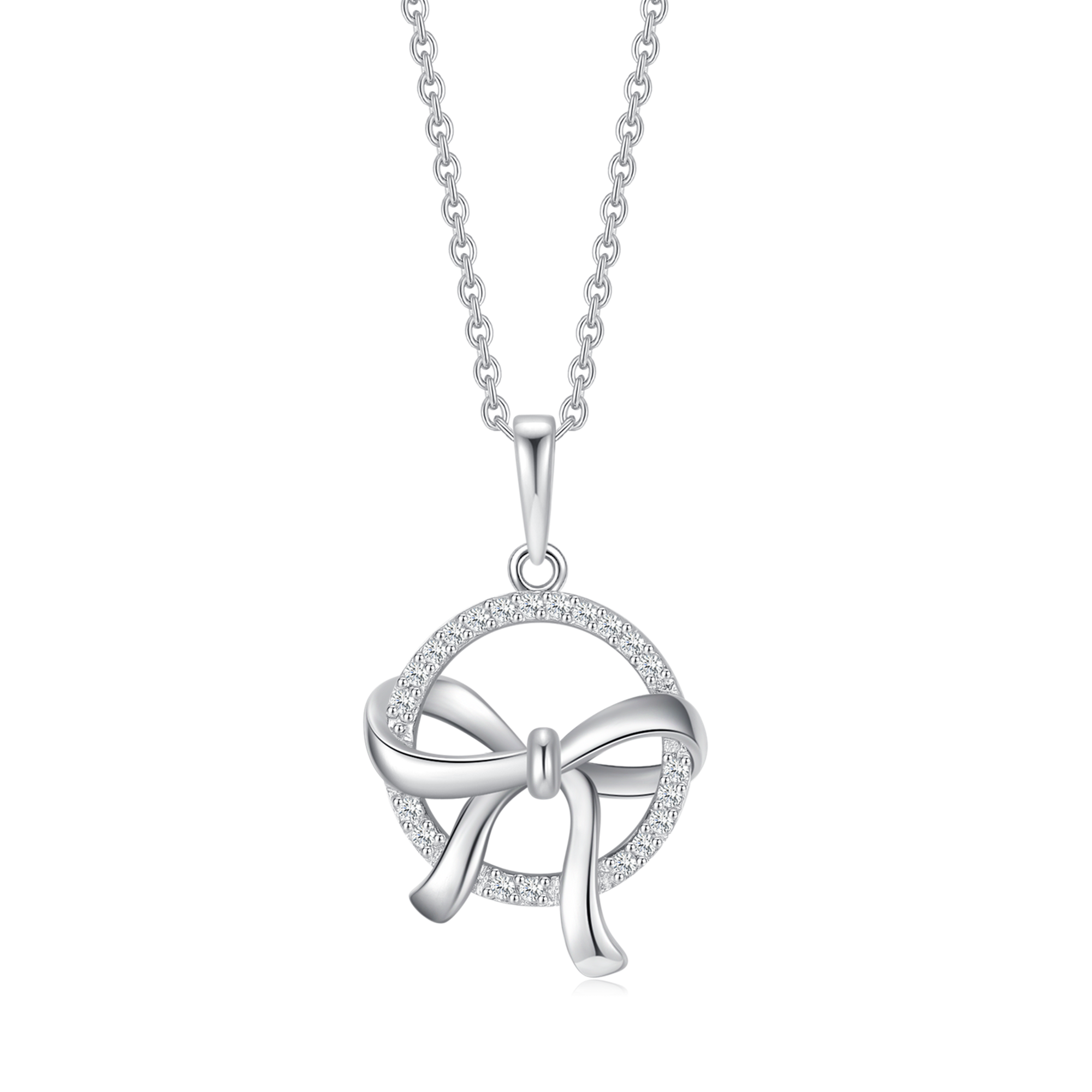 Sølv halskæde rhodineret cirkel med sløjfe og syntetiske cubic zirconia.
